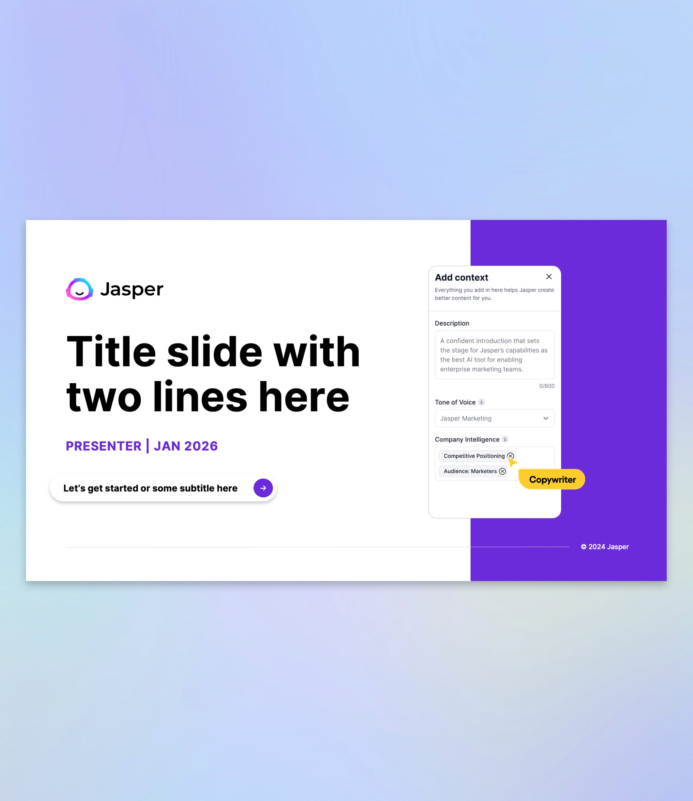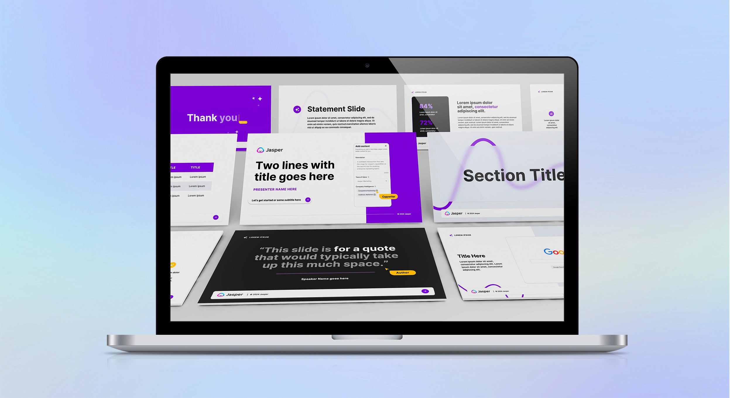 The biggest challenge was presenting a multi‑layered AI platform in a way that felt intuitive and engaging. Jasper’s functionality spans intelligent agents, automation pipelines, contextual brand voice integration, and more — which can be overwhelming if laid out without clear hierarchy. The original materials lacked a streamlined visual structure, making it hard for viewers to quickly grasp the platform’s capabilities and competitive strengths.